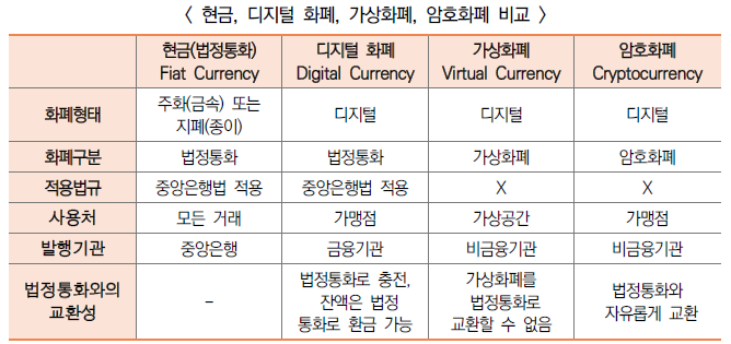 가상화폐 vs. 암호화폐 vs. 디지털 화폐 비교