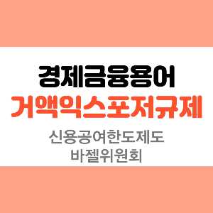 익스포저(exposure)란 기업이나 개인이 외환의 거래, 대출, 투자와 관련하여 부담하게 되는 위험으로 거액과 규제란 단어를 포함하면 거래, 투자 등에 노출되어 있는 큰 위험에 대한 규제라고 볼 수 있겠다.