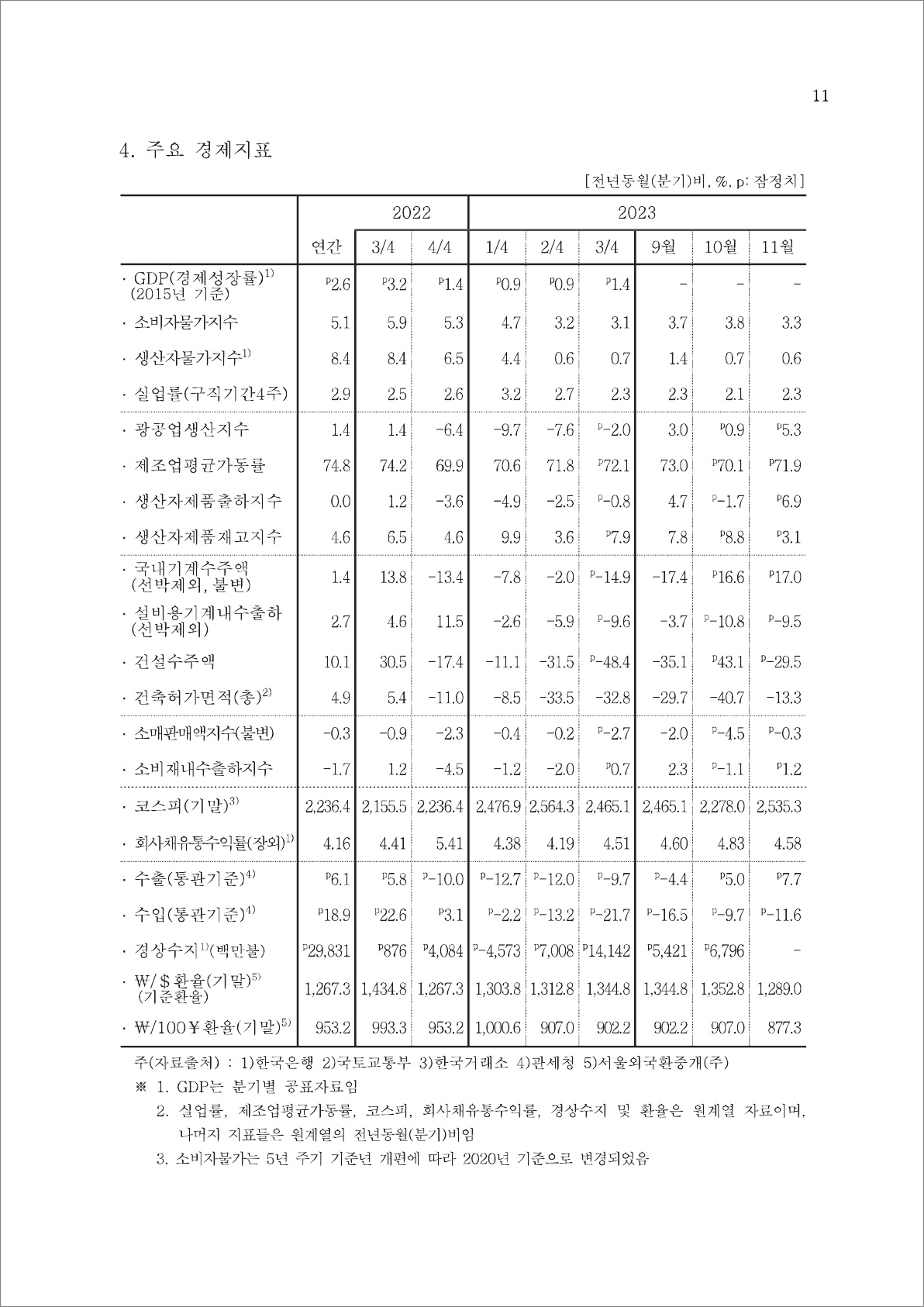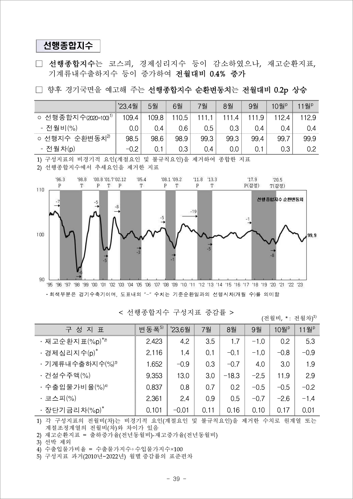 < 최근 자료 > 23년 11월 경기종합지수