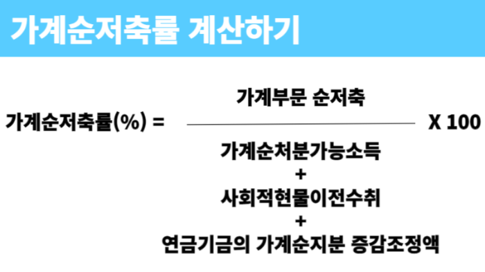 가계순저축률(%) = {가계부문 순저축/(가계순처분가능소득+사회적현물이전수취+연금기금의 가계순지분증감조정)}×100